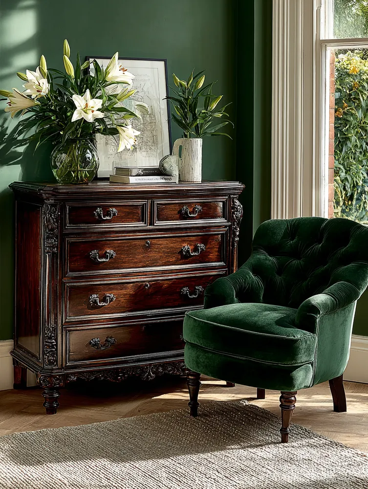 * **Refined Upholstery:** Rich fabrics like velvet, damask, or patterned jacquard in sophisticated colorways work beautifully.