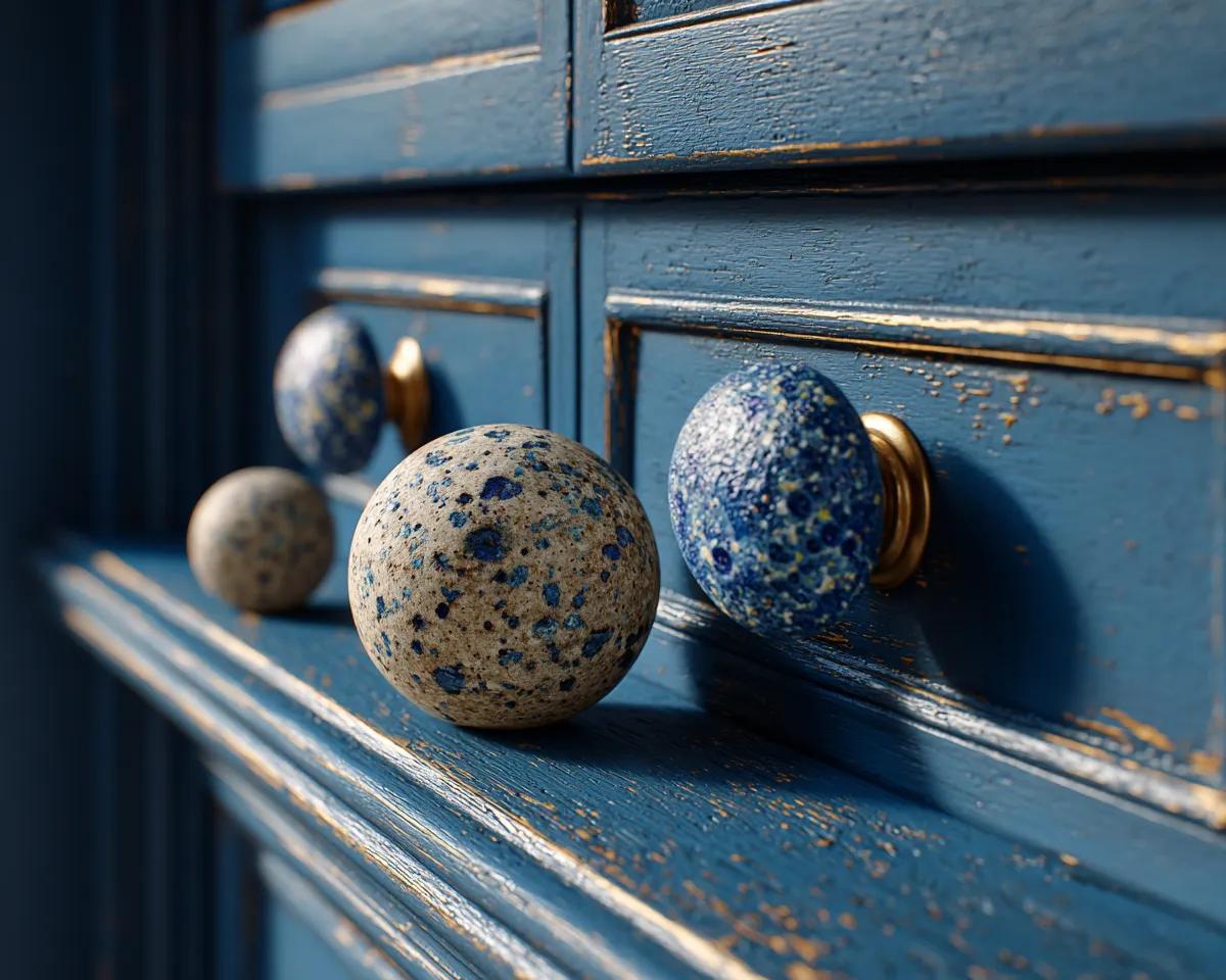 Cabinetry is a fantastic opportunity to incorporate the sophisticated blend of cobalt blue and clay tones. Consider custom kitchen cabinets painted in a deep, moody cobalt blue, complemented by hardware in a brushed antique brass or a natural wood finish. 💙 In a bathroom or dresser, think of the base in a natural clay tone, with drawers or doors accented in a rich cobalt blue. Even a few artisanal ceramic knobs in complementary colors can elevate plain cabinetry. It’s about creating a grounded yet elegant foundation for your decor. #CobaltCabinetIdeas#ClayCabinetIdeas#CabinetryIdeas#CustomCabinetIdeas#ArtisanalHardwareIdeas#KitchenDesign#HomeDecor#ElegantStorage#BlueAndEarthy#HandmadeHardware