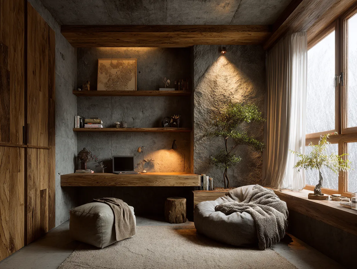 Textured Tranquility: Japandi Home Office Setup 🪵🌿