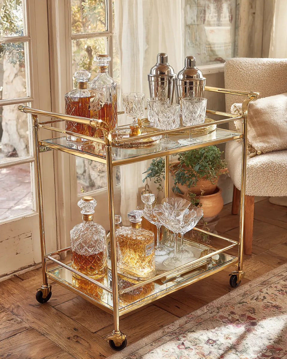 Brass Bar Cart Essentials: Style & Sip in Sophistication! 🥂