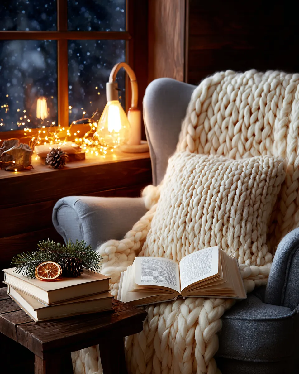 * **The Reading Nook:** Carve out a space with plush seating, a soft blanket, and a warm reading lamp. Perfect for getting lost in a festive tale. 📚