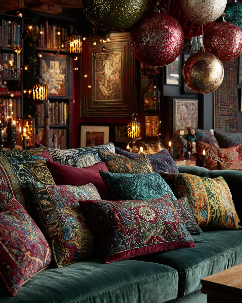 This approach is perfect for injecting personality and warmth into your Christmas celebrations. Think velvet ribbons, oversized baubles, and a touch of glittering gold. Let's make your home a festive wonderland! #ChristmasDecorIdeas#MaximalistChristmas#BohemianChristmas#GlobalDecorIdeas#HolidayHomeTour#EclecticHome#VibrantDecor#FestiveVibes#HolidayInspo#ChristmasStyle
