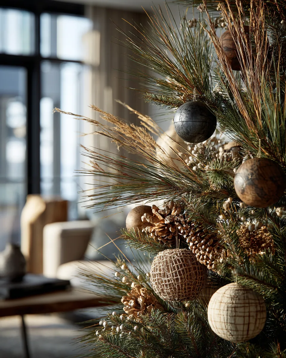 📏 **Varying Scale & Shape:** Don't be afraid to use larger, more impactful ornaments alongside smaller, detailed ones. Think spheres, cubes, and organic shapes.