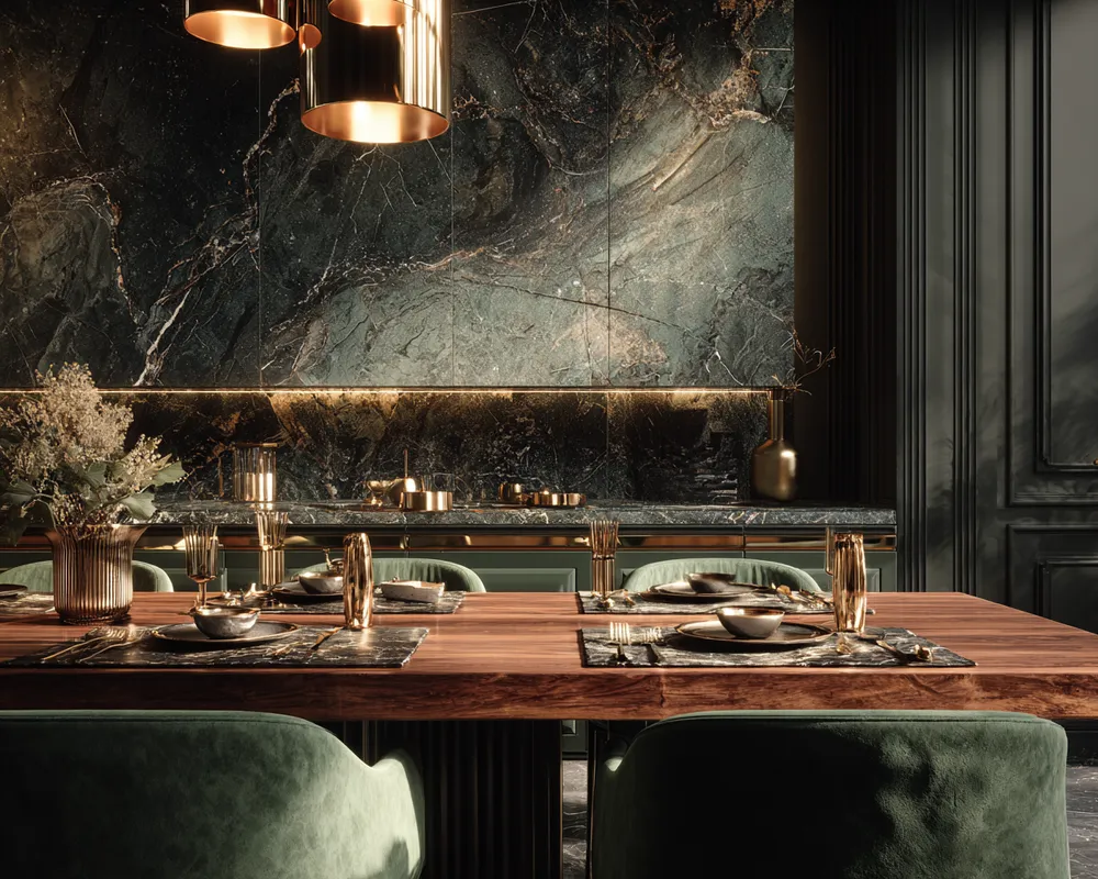Elegant Fusion: Champagne Gold & Forest Green for a Dining Room 🥂🌲