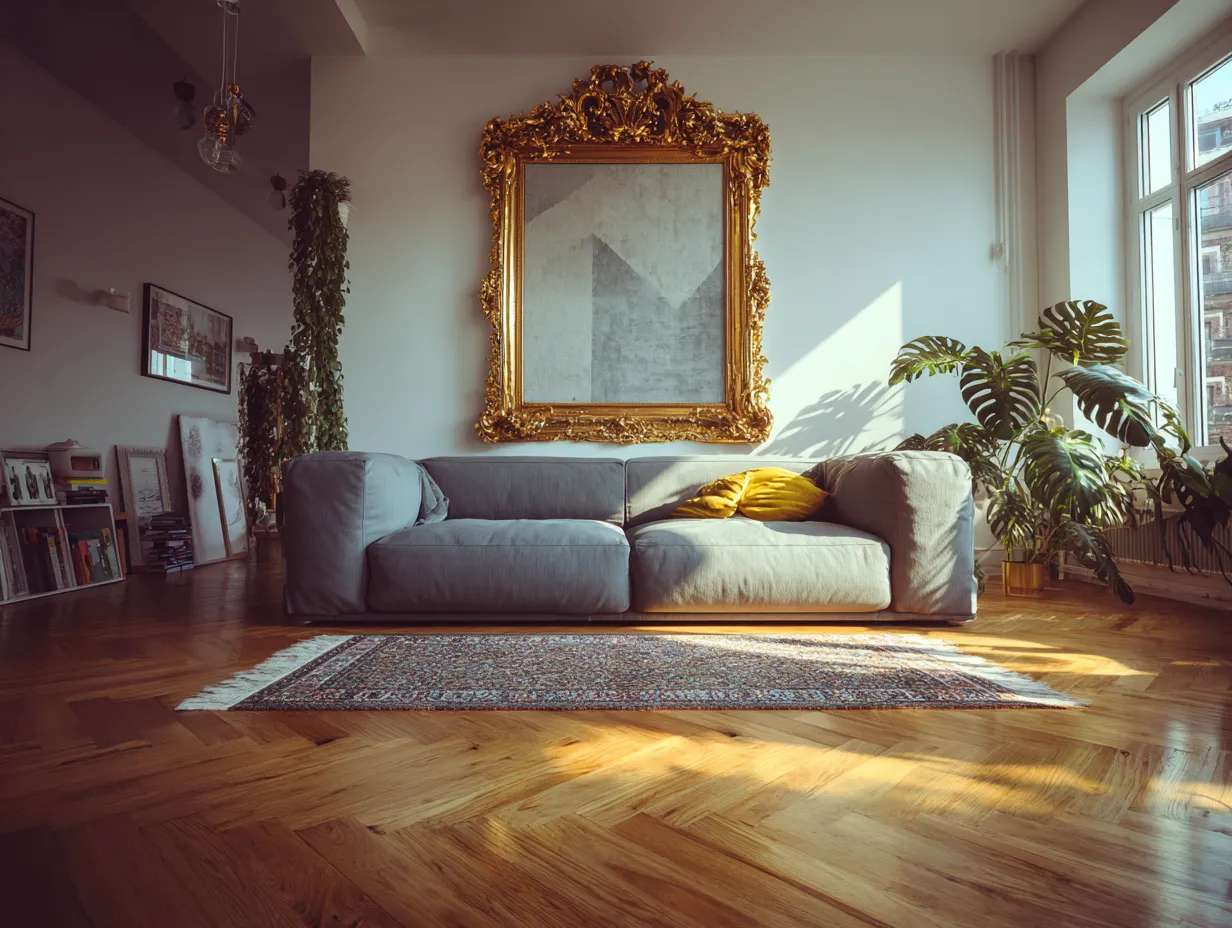 An oversized ornate frame, whether holding a mirror or a piece of art, adds a sense of luxury and grandeur. It can turn a blank wall into a dramatic focal point, making your room feel more intentional and sophisticated.