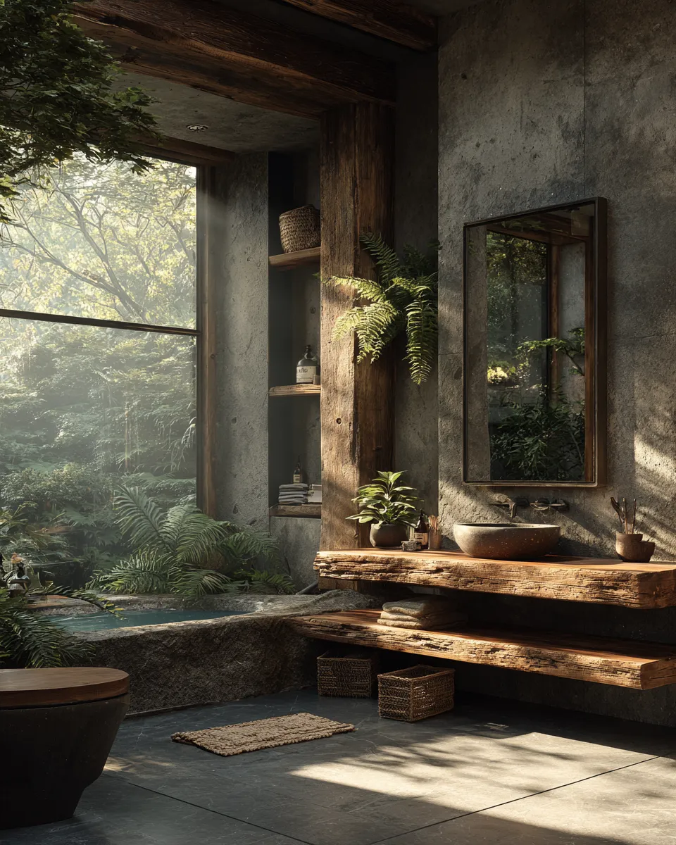 Tactile Bathroom: Elevate with Natural Stone & Wood 🪵