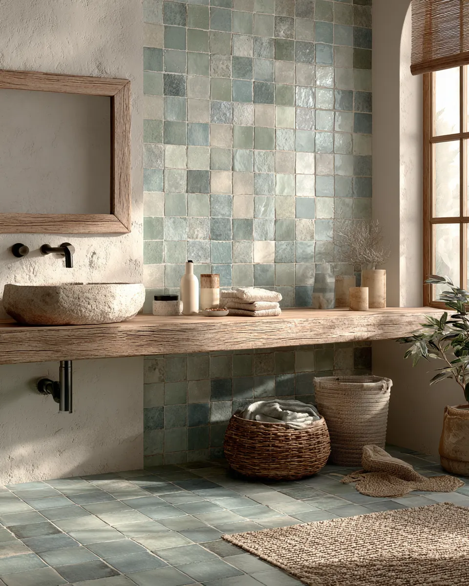 How do you invite calm into your space? Save this for harmonious design inspiration! ✨ #SageGreenIdeas#CalmingColours#HomeDecorIdeas#InteriorDesign#NatureInspiredDecor#SereneSpaces#ColourPalette#DecorInspiration#BathroomDecor#BedroomInspo