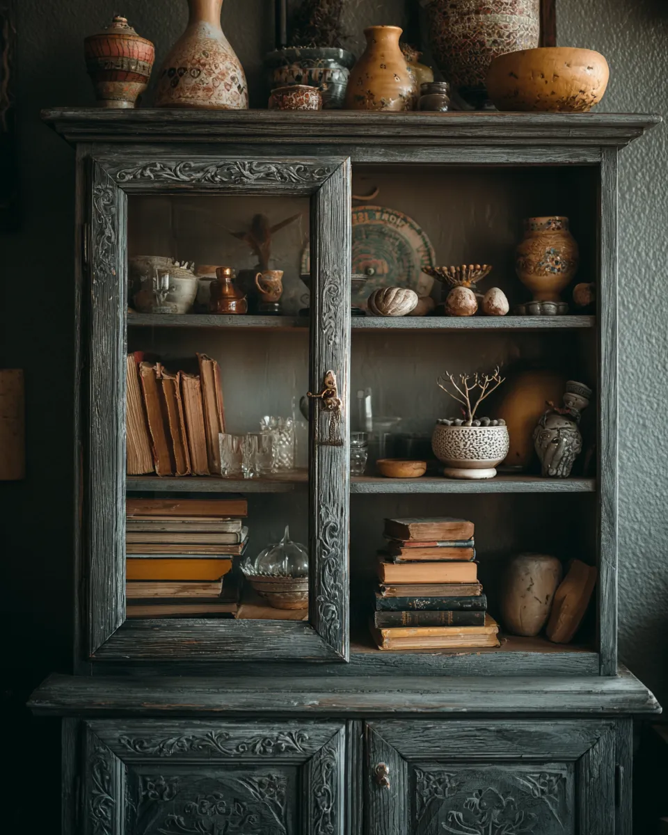 Display cabinets are more than just storage; they're a canvas for your personality and collected treasures! To style yours effectively, think about balance, height, and repetition. Group similar items together or create vignettes with varying heights using books and small decorative objects. 🪴 Don't overcrowd! Leave negative space to allow each piece to breathe and be appreciated. Mix materials and finishes for visual interest – think ceramic next to wood, metal beside glass. It’s about creating a cohesive story that reflects your unique taste and travel discoveries. 🗺️ #DisplayCabinetIdeas#CabinetStylingIdeas#CuratedDecorIdeas#InteriorShowcaseIdeas#EclecticStorageIdeas#HomeDecorTips#ShowcaseYourStyle#VintageFinds#GlobalTreasures#PersonalizedSpaces