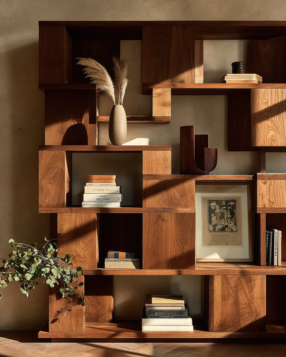 * Vary heights and textures: mix books, sculptures, plants, and decorative objects.