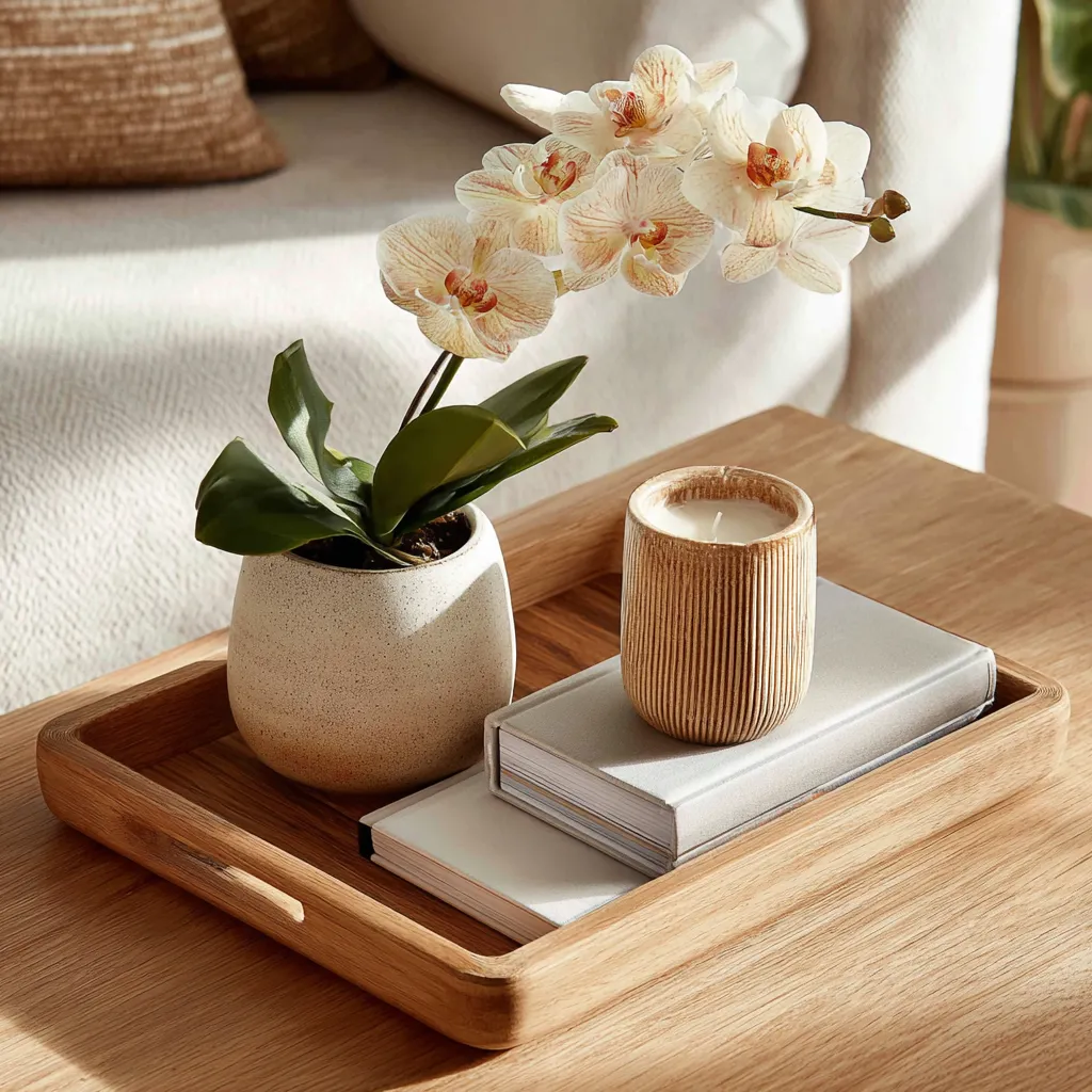 * **Nature's Touch:** Add a minimalist vase with a single botanical element (a branch, a bloom) or a small, well-cared-for plant.