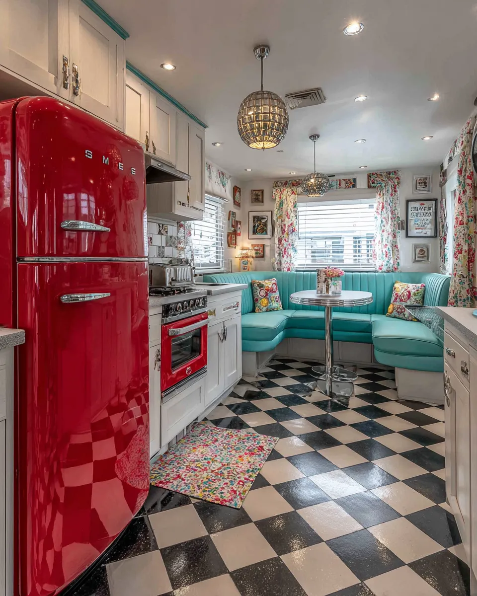 Embrace the nostalgia and create a space that’s as functional as it is fabulous! Save this for your next kitchen project! 🌟 #RetroKitchenIdeas#50sKitchen#DinerVibes#RetroDecorIdeas#VintageKitchen#KitchenMakeoverIdeas#HomeRenovation#EclecticDecor#NostalgicHome#KitchenDesign