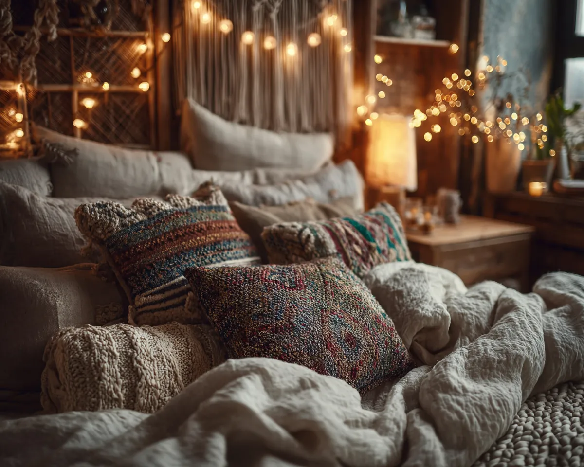 🌙 Global patterns: Introduce pillow covers with Kilim, ikat, or bohemian prints.