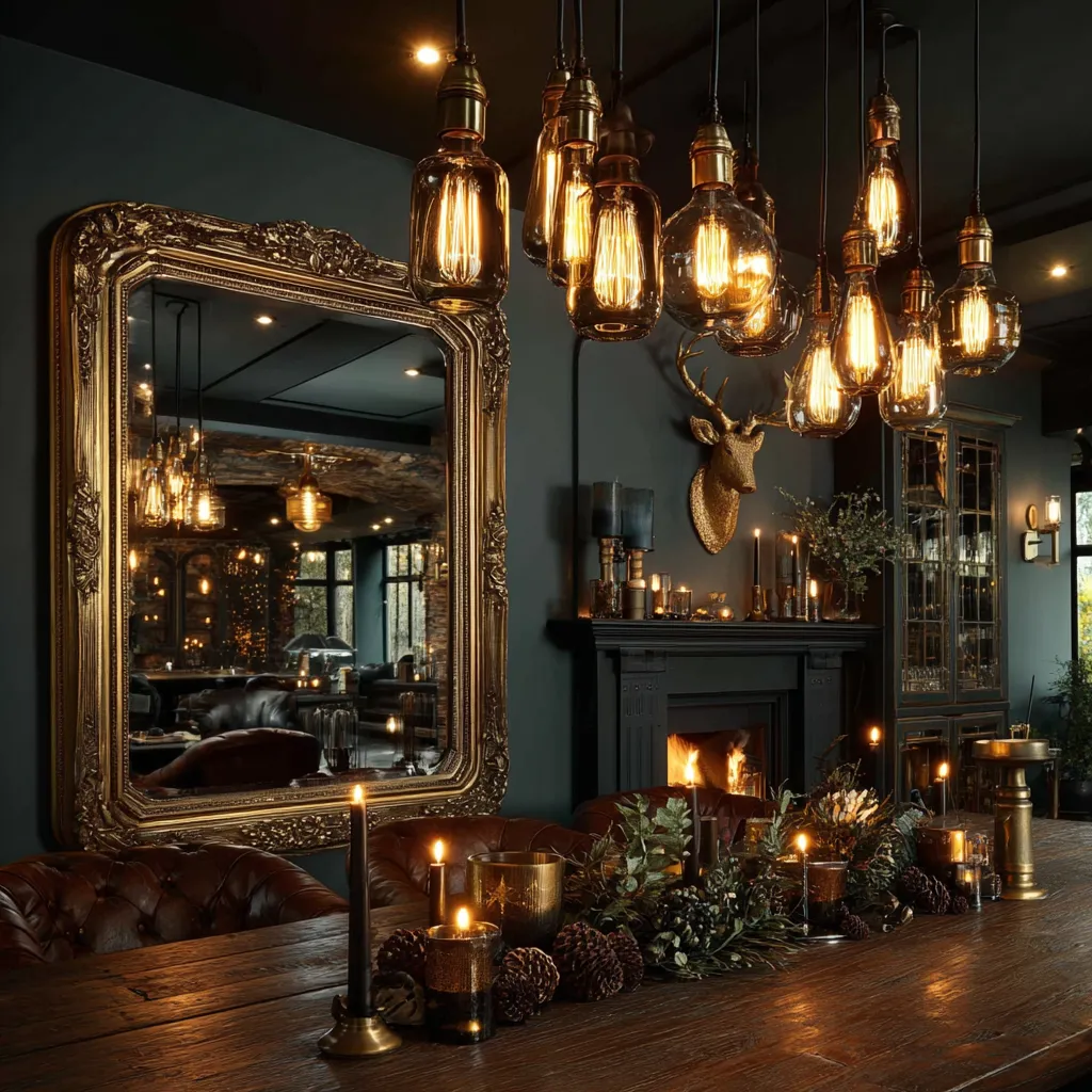 * **Mirror Magic:** A brass-framed mirror can reflect soft candlelight and festive decorations.