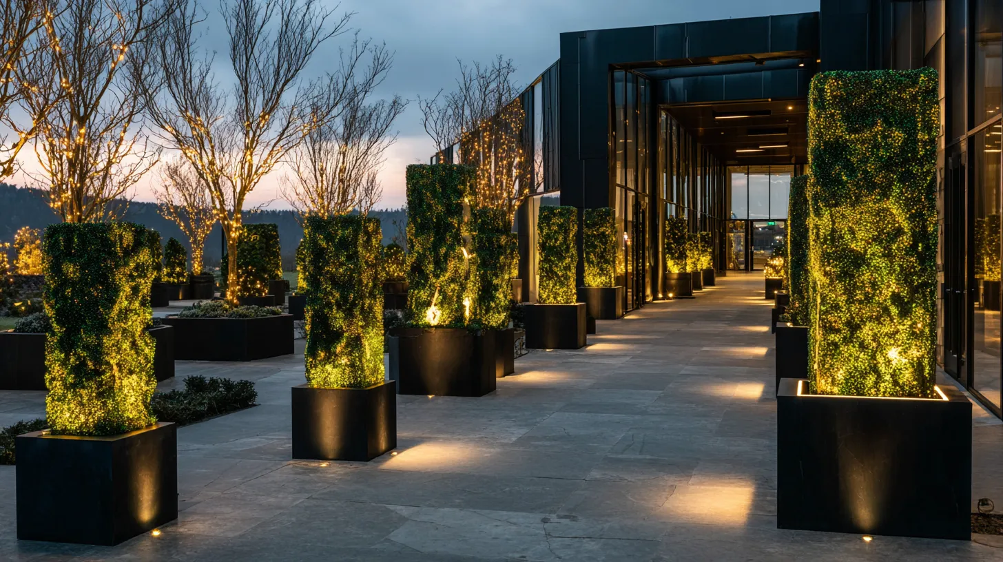 This holiday season, let your garden's geometry shine with intentional outdoor lighting. Focus on accentuating the sculptural elements of your landscape architecture. Think precise, upward-facing uplights that cast dramatic shadows from your angular planters and precisely trimmed shrubs. Consider geometric string lights that mimic clean lines, perhaps suspended in a linear pattern between structures. Opt for cool, white LED lights to maintain a crisp, contemporary aesthetic that aligns with sculptural garden design. It's about defined forms and subtle drama. 💡🌳✨ #GeometricLightingIdeas#OutdoorLighting#ChristmasGarden#GardenLightingIdeas#SculpturalLighting#LandscapeLighting#ModernGarden#ChristmasLights#DesignInspiration#OutdoorDesign