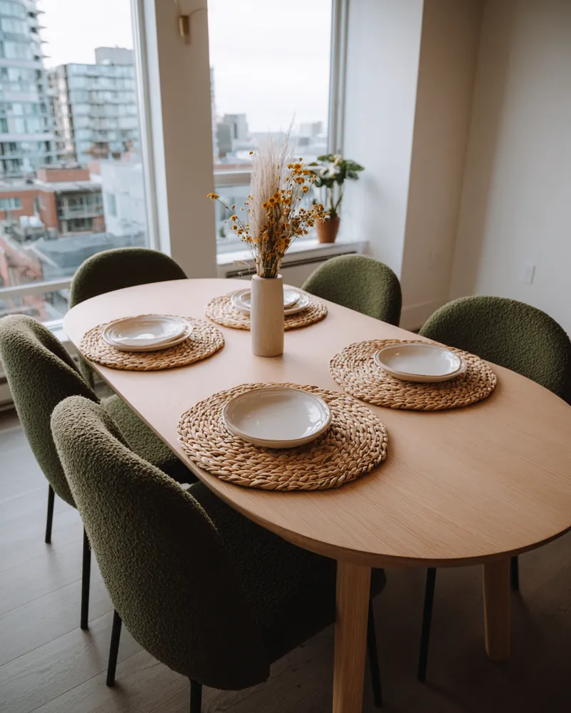 Meadow Mist: Soft Greens, Whites & Grains for a Calming Dining Room ๐พ