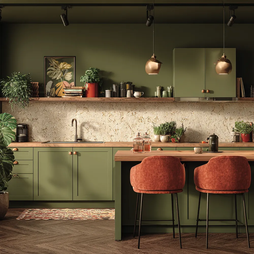 Velvet Vibes & Deep Hues: 70s Kitchen Charm! 🍽️