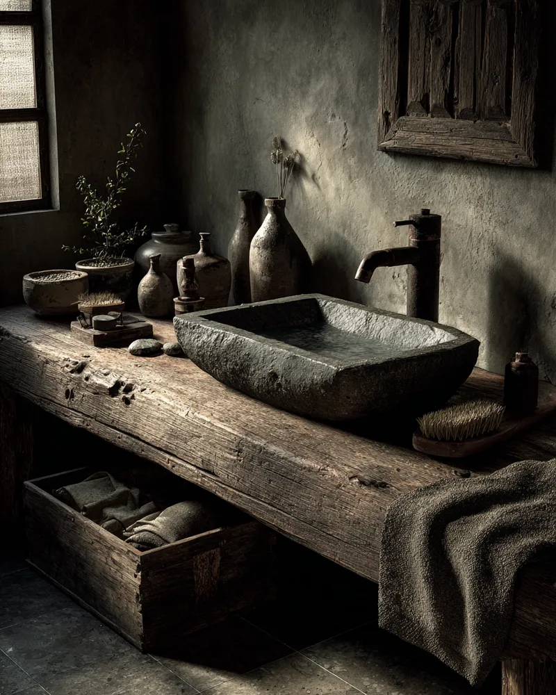 Wabi-Sabi Bathroom: Serenity in Natural Textures 🤎