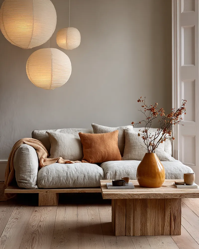 Balancing Act: Japandi Living Room Design with Warm Accents 🔥