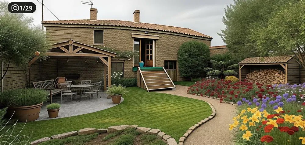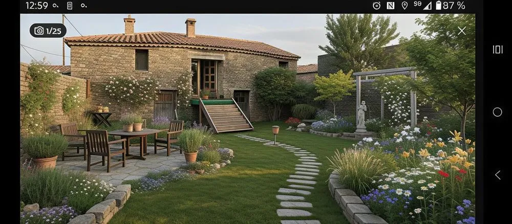 the landscaping software is showing an outdoor garden