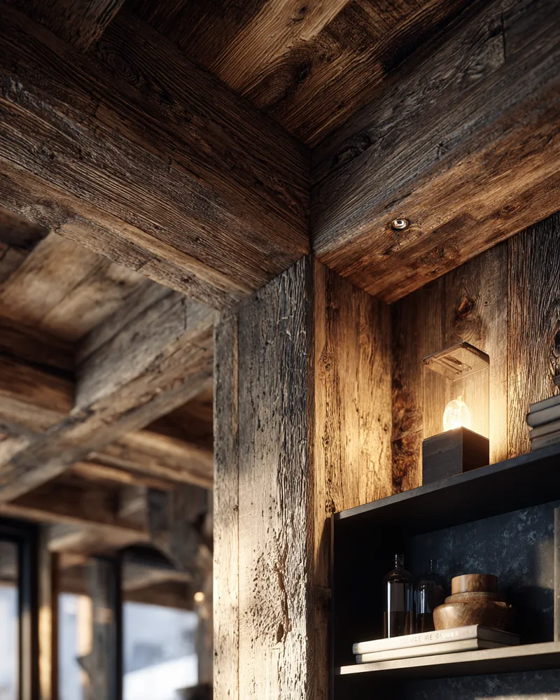 Wood is the soul of mountain living! 🌲 Our Chalet Charm persona thrives on rich wood details that infuse spaces with warmth and character. Think exposed beams, reclaimed wood furniture, shiplap walls, and artisanal wooden accents. These elements create a sense of timelessness and add a luxurious, grounded feel to your rustic retreat. Embracing the natural beauty of wood is key to that cozy elegance. Save for charming wood ideas! ✨🪵