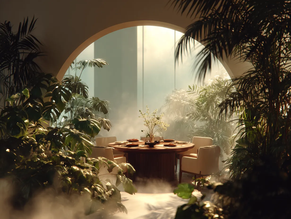 Elevate your dining experience by bringing the calming essence of nature to your dining room. Biophilic design here is about creating a serene environment that enhances connection and enjoyment.