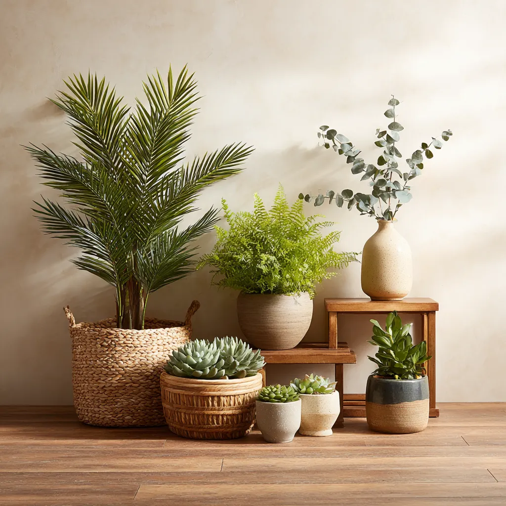 * **Vases:** Use ceramic, glass, or even woven planters to complement your style.