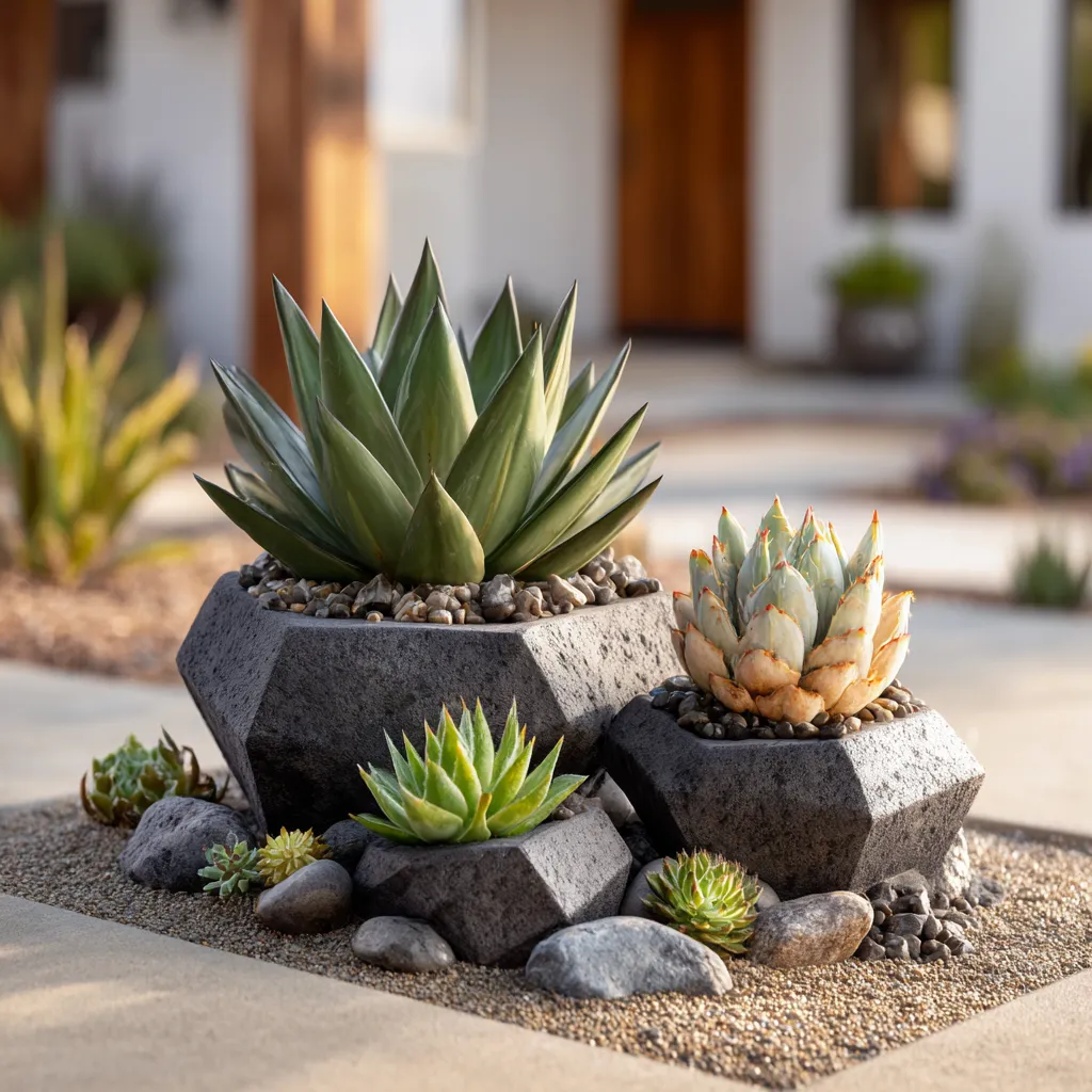 Focus on a few statement plants with unique textures and shapes. Think Agaves, Echevarias, and architectural Aloes. Use geometric planters made from concrete or corten steel for that sharp, precise feel. Incorporate gravel or large, angular stones for a contemporary ground cover. It’s all about creating visual interest through form and negative space.