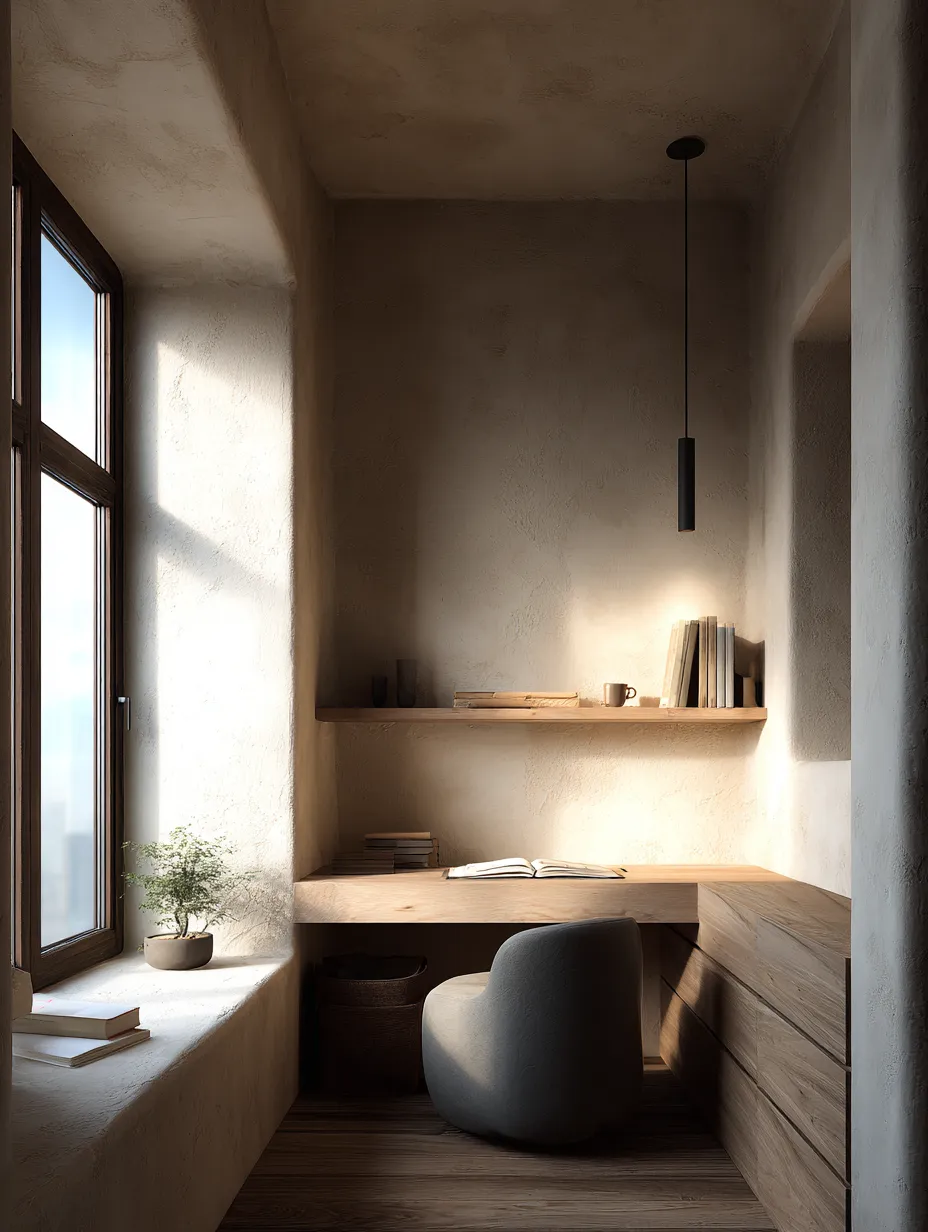 Textured Tranquility: Japandi Home Office Setup 🪵🌿