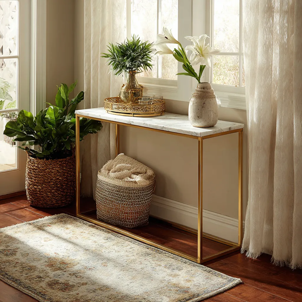 Make a grand first impression with a marble console table! 🤍 Placing a sleek marble console table in your entryway instantly adds a touch of luxury and sophistication. It’s the perfect spot for a welcoming floral arrangement, your keys, or a decorative lamp. The natural beauty and cool elegance of marble create an inviting atmosphere from the moment guests step inside. It's a simple yet powerful way to infuse your home with timeless style. Save this for your entryway makeover! ☁️