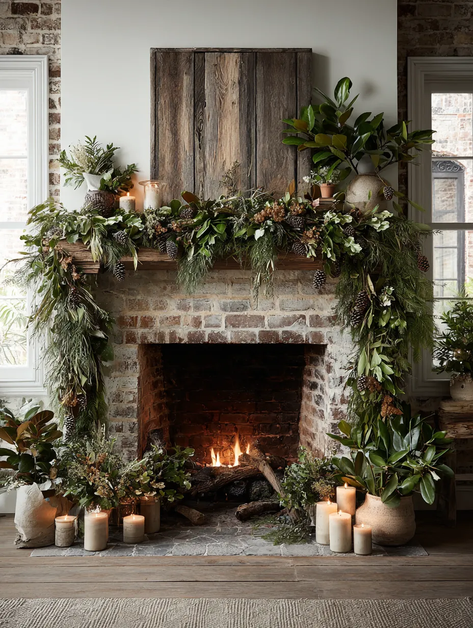 Don't forget to save this for your mantelpiece inspiration! #EvergreenChristmasIdeas#BiophilicMantelIdeas#NaturalHolidayDecorIdeas#ChristmasGarlandIdeas#RusticChristmasIdeas#CozyFireplaceIdeas#BiophilicHome#HomeDecorInspo#FestiveDecor#NatureLovers