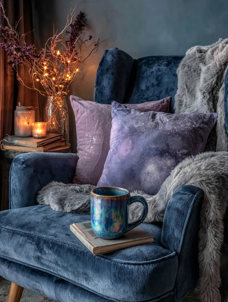 Who says Christmas coziness has to be traditional? Let's create a galactic getaway right in your home! 🌠 Think deep blues, soft purples, and hints of silver that mimic a starry night. Imagine a reading nook with a plush, velvet armchair draped in a faux fur throw. Add pillows in cosmic patterns or deep jewel tones. Illuminate the space with warm, twinkling fairy lights and perhaps a celestial-themed projector casting soft stars on the ceiling. A small side table could hold a shimmering, starry mug and a cozy blanket. It’s about creating a serene, otherworldly escape to enjoy the holiday season. Save this for your personal cosmic sanctuary! ✨ #GalacticNookIdeas#CozyChristmasIdeas#CelestialHomeIdeas#EtherealNooks#CosmicDecorInspo#DreamySpaces#ChristmasReadingNook#FestiveEscape#HomeSanctuary#OtherworldlyHome