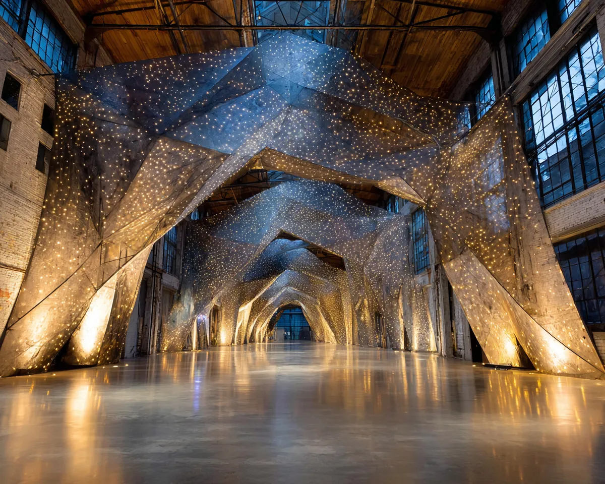 Repurposed Factory Christmas: Bold Metallics & Raw Textures 🎁