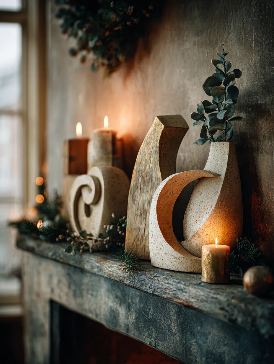 Unboxing Serenity: Abstract Shape Styling for Your Christmas Mantel! 🎁