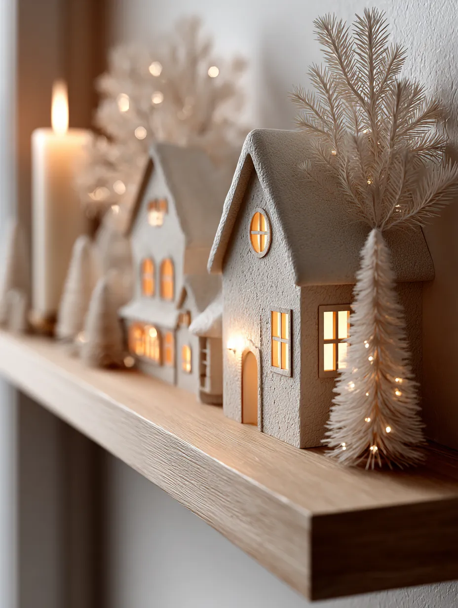 Creating a charming Christmas vignette is all about mindful styling. ✨ For that signature Scandinavian feel, I focus on light, warmth, and uncluttered spaces. A simple ceramic white house with a subtle glow from within, placed on a natural wood shelf with a few delicate evergreen branches, speaks volumes. Add a single beeswax candle to cast a soft, flickering light. It’s about creating moments of quiet beauty that fill your home with joy and peace. ☕ Let your decor tell a story of warmth and togetherness. Tag a friend who loves minimalist holiday decor! #ScandiDecor #ChristmasVignette #MinimalistHome #CozyHomeIdeas #HolidayDecorIdeas #WarmAndCozy #ScandinavianChristmasIdeas #SimpleDecor #HomeStylingTips #InteriorInspo