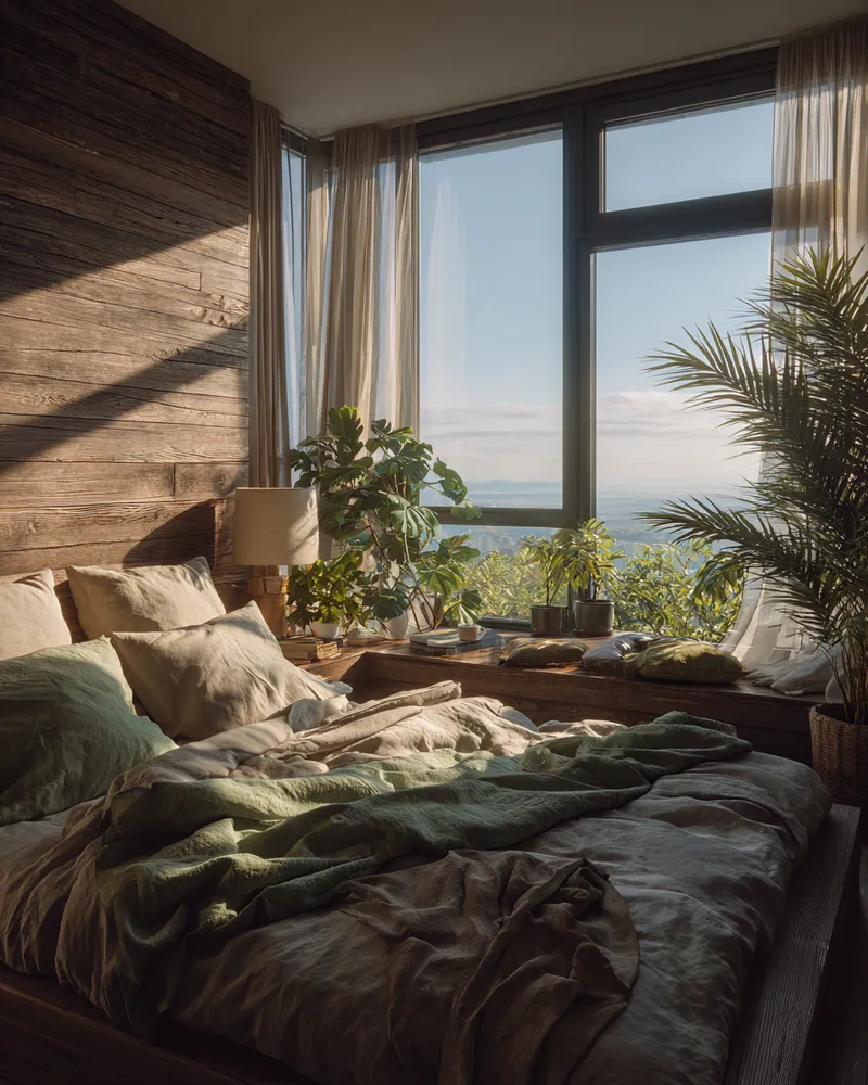 Nature's Palette: Japandi Bedroom Comfort & Light 🌿