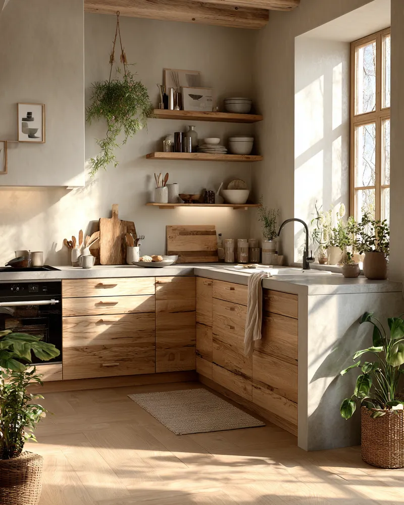 Elevate Your Kitchen with Japandi Simplicity: Stone & Wood Fusion 🥢