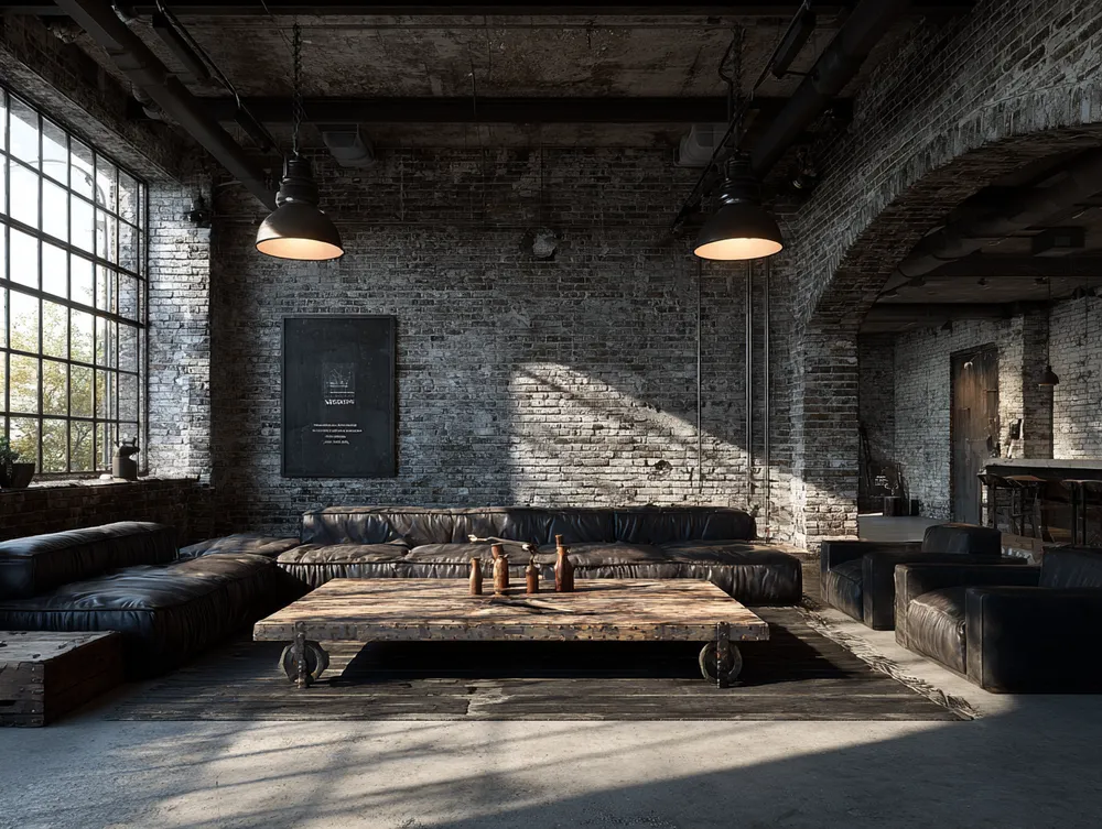 🛋️ Industrial Texture Play: Elevate Your Sofa Style