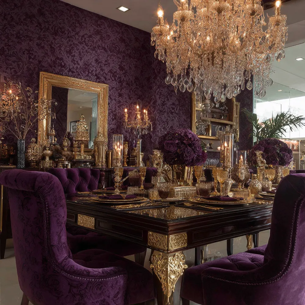 💜 Deep Purple & Gold: Luxurious & Dramatic Dining Room Extravaganza!