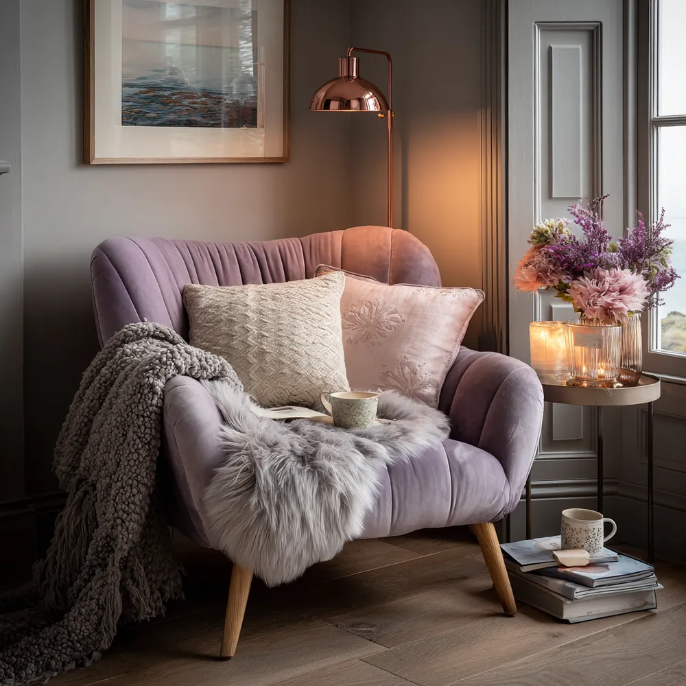 💜 Lavender & Soft Grey: Enchanting & Cozy Reading Nook Oasis!
