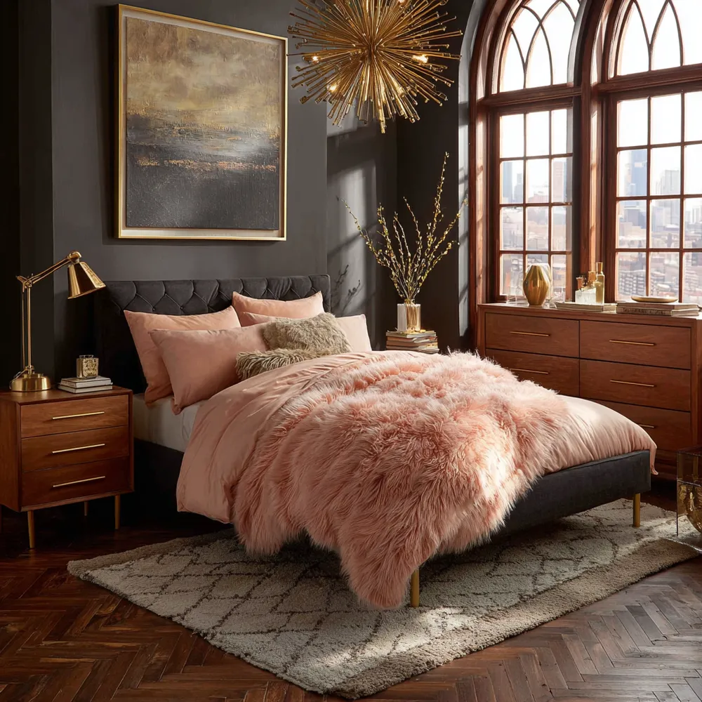 💖 Blush Pink & Charcoal Grey: Chic & Modern Glam Bedroom!