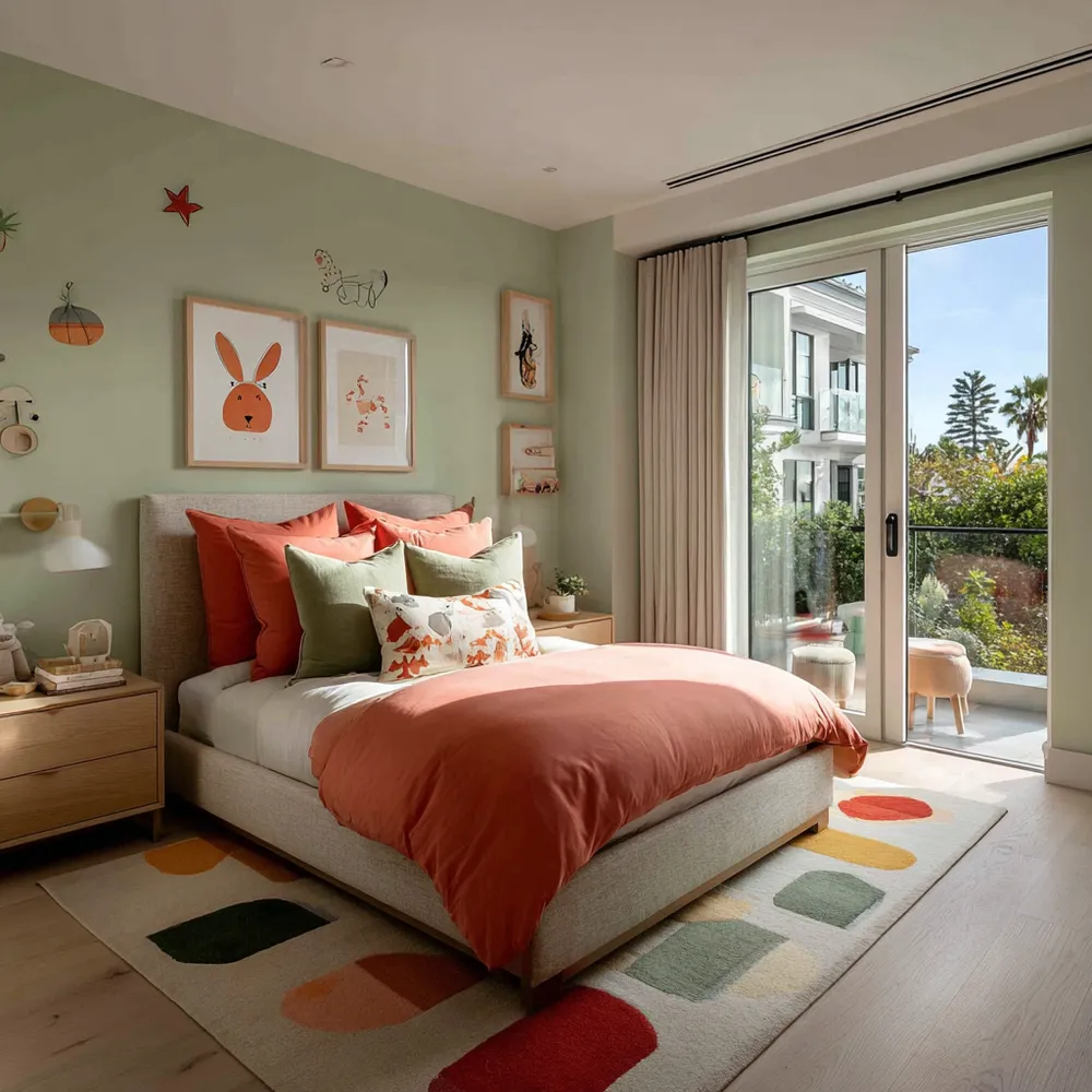 🧡 Coral & Mint Green: Playful & Energetic Kids' Room Fun!