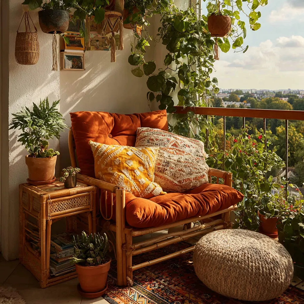 🍊 Sunset Orange & Mustard Yellow: Bohemian Chic Balcony Vibes!