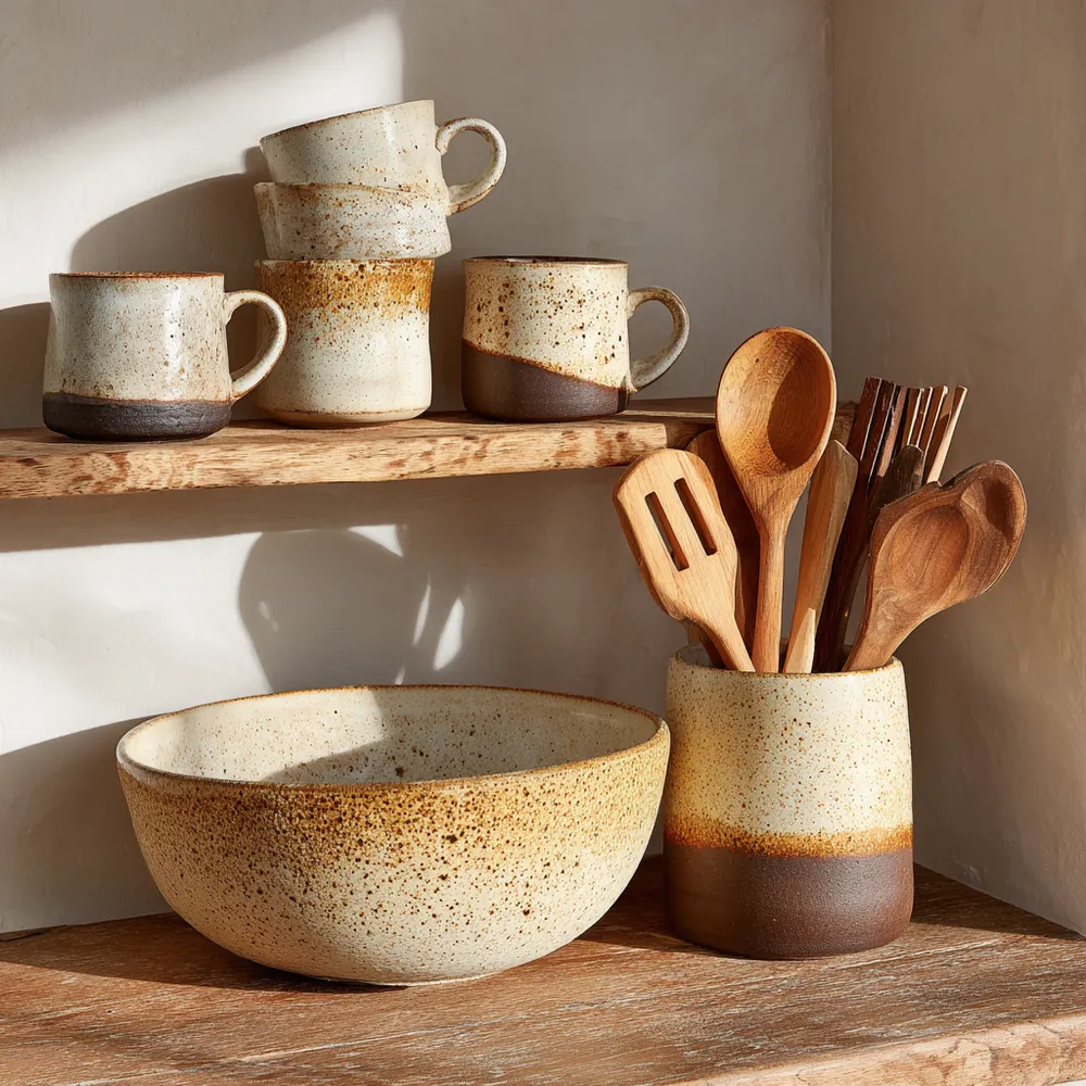 Nature's Palette: Stoneware & Natural Wood for a Grounded Home 🪵🌿