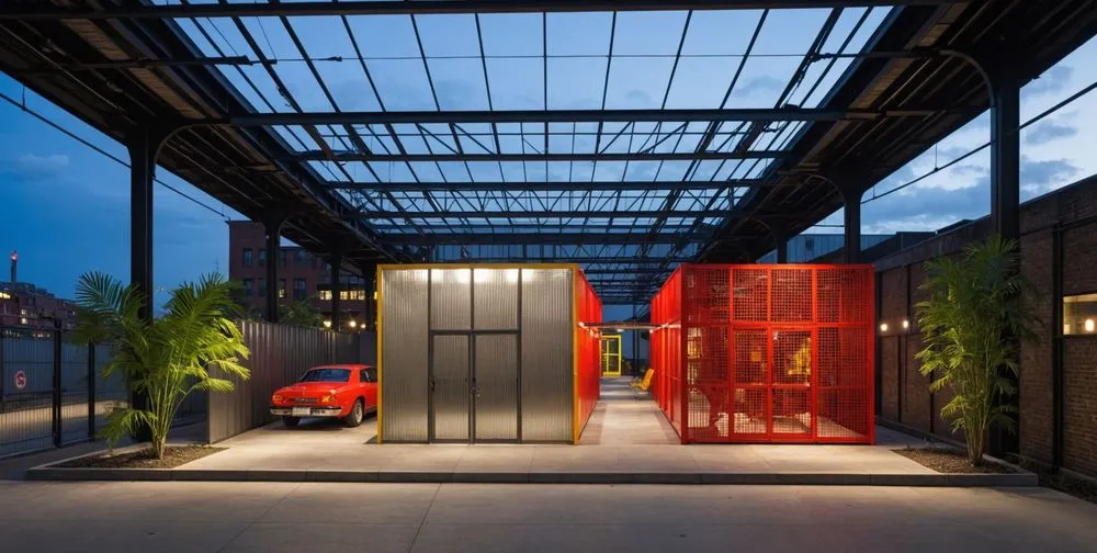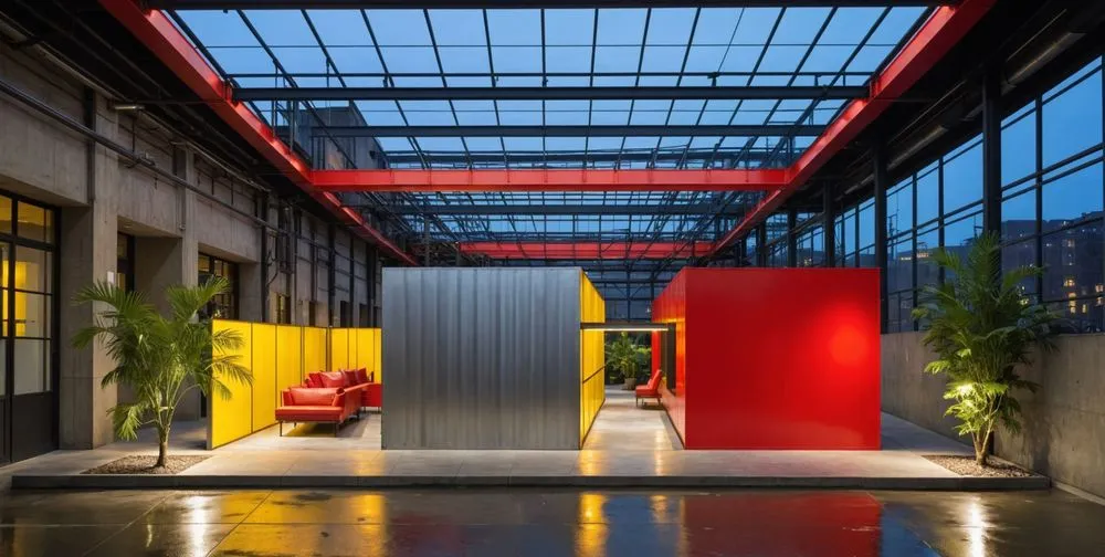 industrial-the inside of a building with many windows and doors