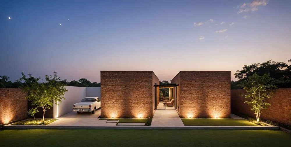 a modern home with some lighting on