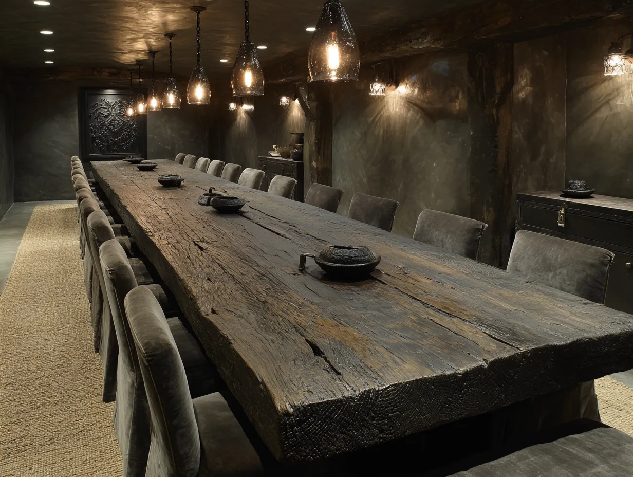 Earthy Elegance: Grotto Dining Room Ambiance 🦇
