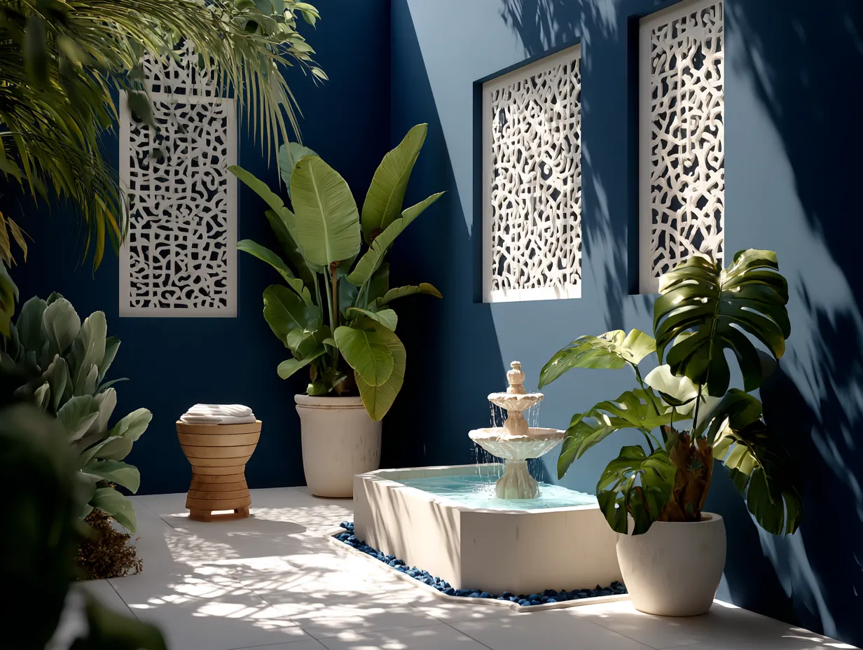 Inspired by the serenity of Moorish courtyards? 🕌 You can bring that peaceful, exotic energy into your own space! Think about integrating intricate geometric patterns, a hallmark of this beautiful architecture, into your decor. This could be through wallpaper, carved wood screens, or even as a stunning mosaic on a tabletop. Combine this with the feeling of an outdoor sanctuary by incorporating lush greenery and water features. Even a small fountain indoors can create a calming ambiance. It's about bringing the outside in, with a sophisticated, ancient twist. 💚 Save for your ultimate relaxation spot! ✨ #MoorishCourtyardIdeas#GeometricPatternIdeas#IndoorOasisIdeas#BalconyDecorIdeas#RelaxingHomeIdeas#DesignInspiration#HomeAndGarden#MeditationSpace#ZenDecor#InteriorInspo
