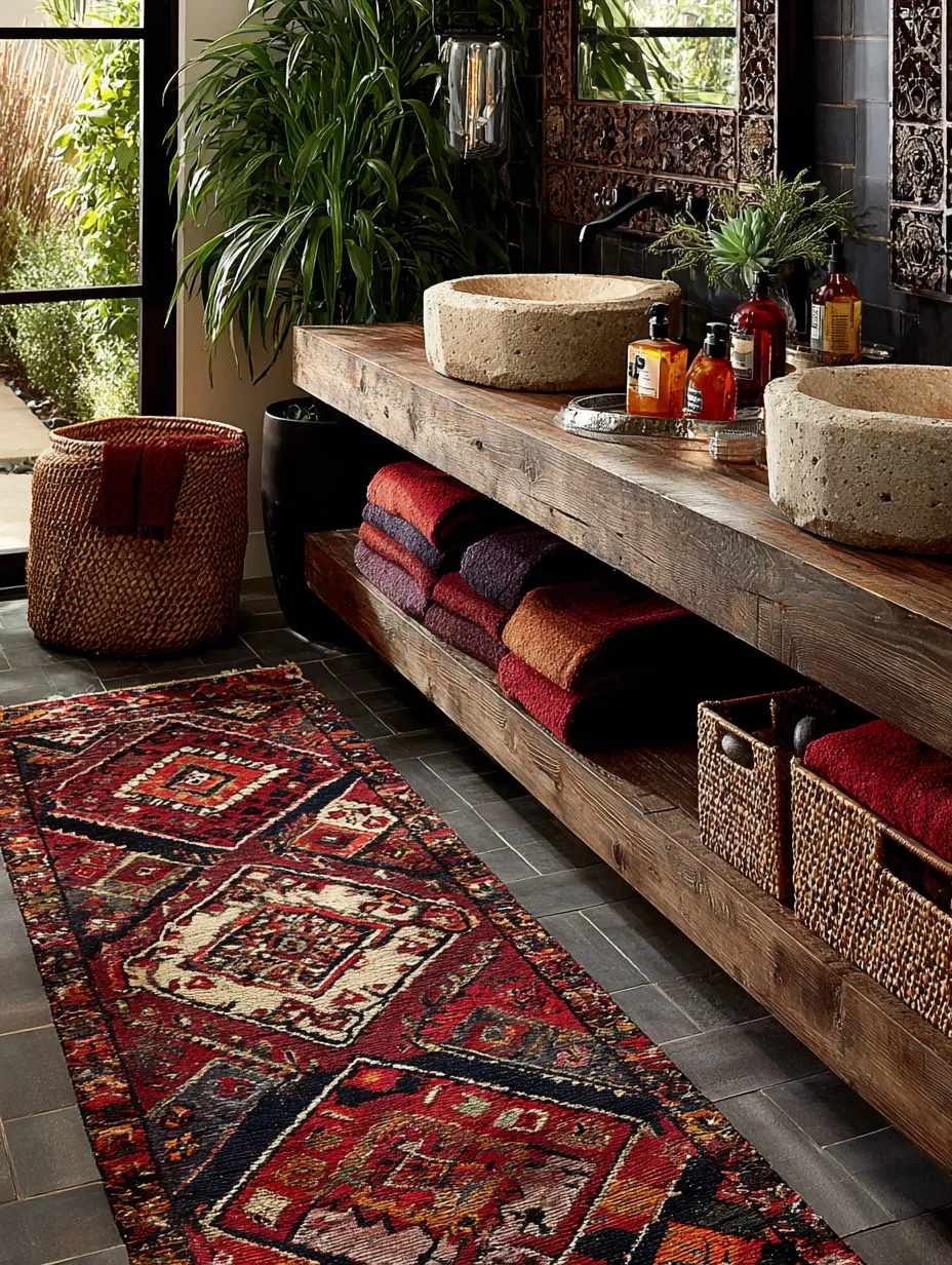 Who says bathrooms have to be boring? Let's inject some bohemian bliss into your washroom! 🌸 Think vibrant textiles, natural materials, and a touch of global flair. ✨ This space can be a serene escape or a playful sanctuary. Swap out plain towels for richly patterned ones. Add a woven bath mat, a macrame plant hanger, and some unique ceramic soap dispensers. Consider a colorful piece of art or even a tapestry for an unexpected touch. Good lighting and greenery are essential! Save this for your bathroom refresh!