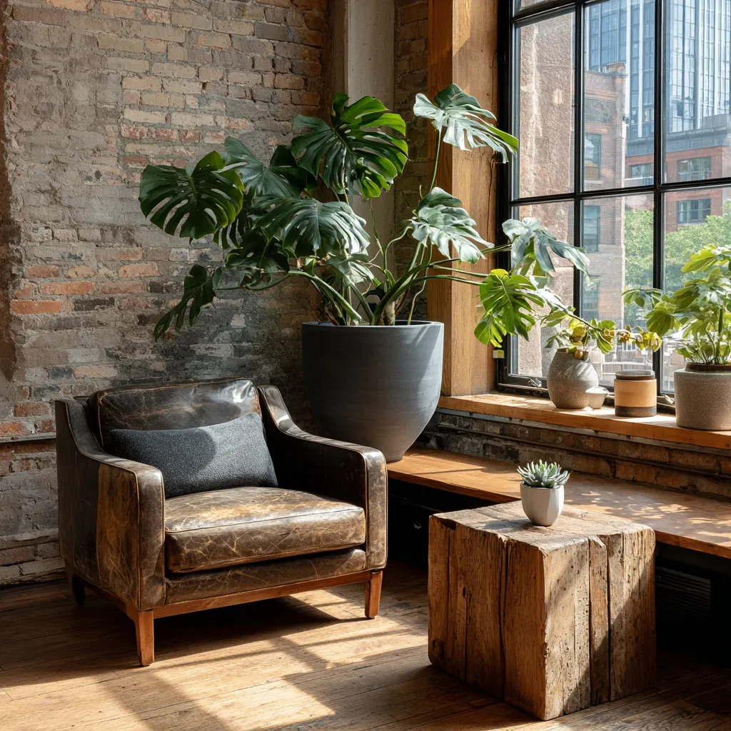 Create a biophilic loft that feels both grounded and airy. What's your favorite urban plant companion? #LoftNatureIdeas#IndustrialNatureIdeas#BiophilicDesignIdeas#UrbanJungleIdeas#BringingNatureInIdeas#LoftDecor#IndustrialLoft#PlantDecor#NaturalMaterials#CityGardening