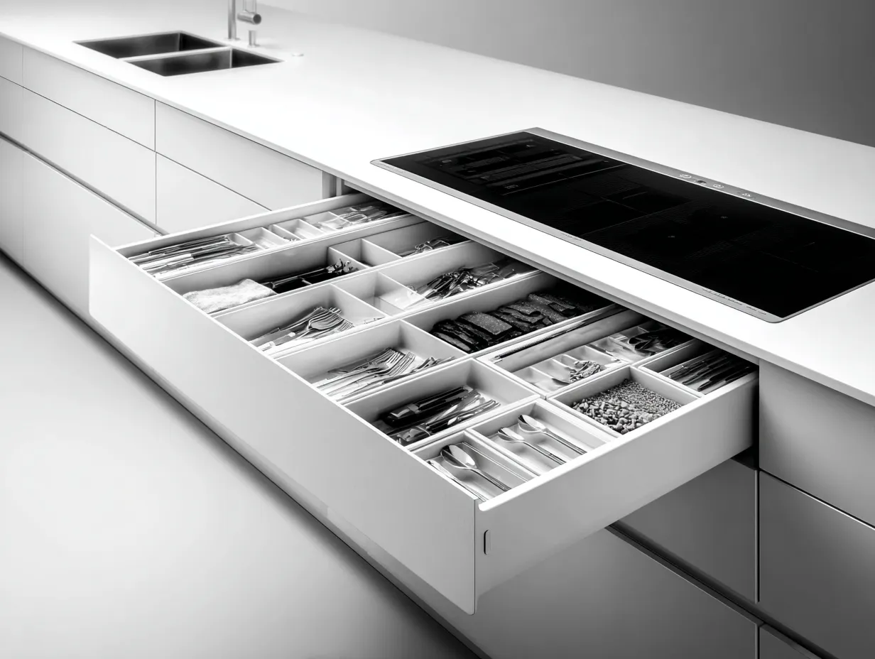 Achieving a clutter-free kitchen is essential for a serene home. Smart, hidden storage is your best friend in minimalist design.